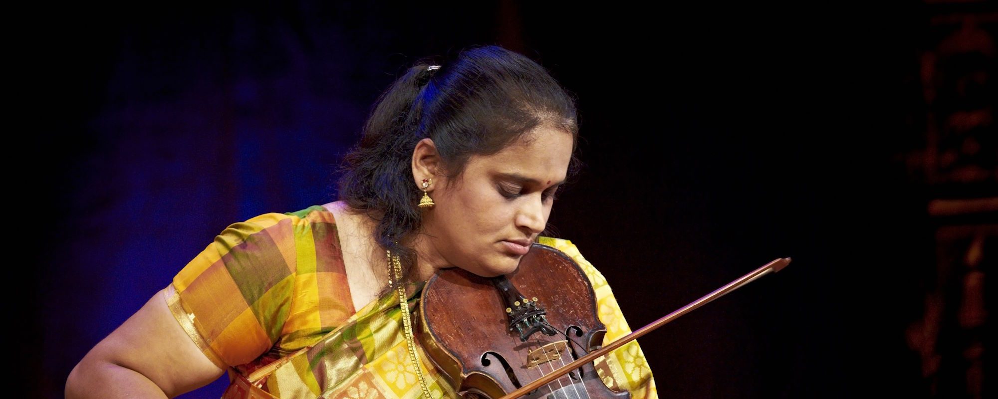 Her musical tutelage began at home guided by her mother, Ratna Srikantiah, a Carnatic vocalist and teacher. She went on to a successful career lending her talent to the film industry, playing on over two hundred South Indian cinematic soundtracks. Upon moving to London her work expanded to include television and festival engagements including work for the Discovery Channel, National Geographic, WOMAD, BBC Proms and the Red Violin Festival. She also lectures in music, having delivered her discourse at the University of Cambridge and Liverpool University.